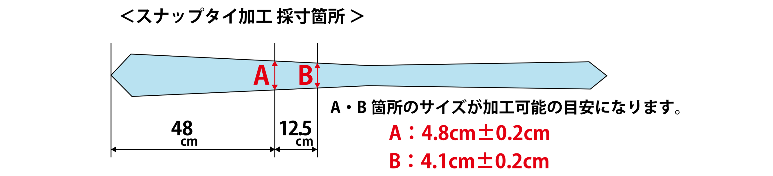 お持ちのネクタイの【A】【B】の箇所を採寸してください。