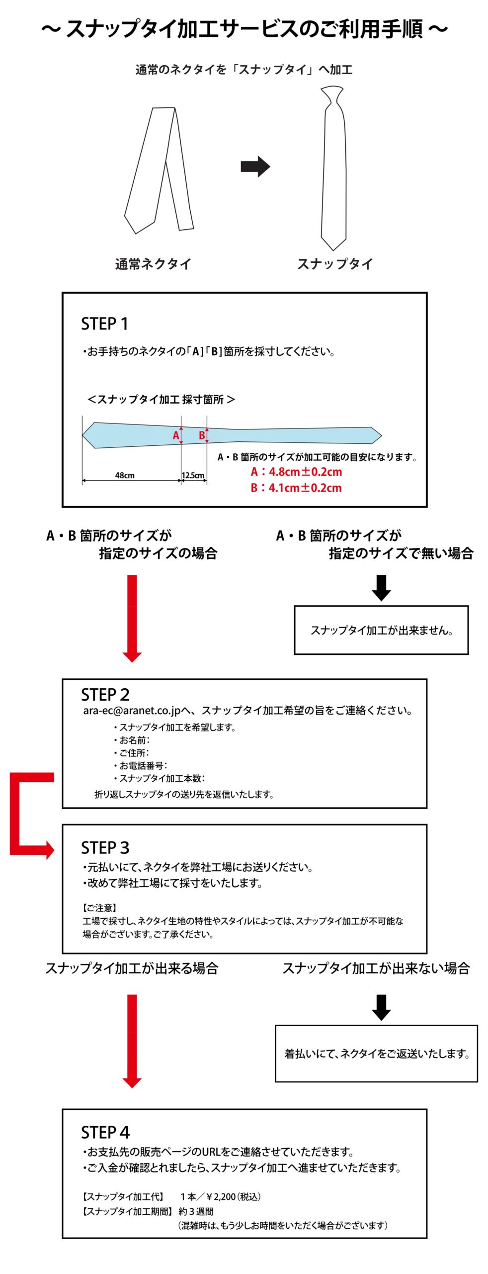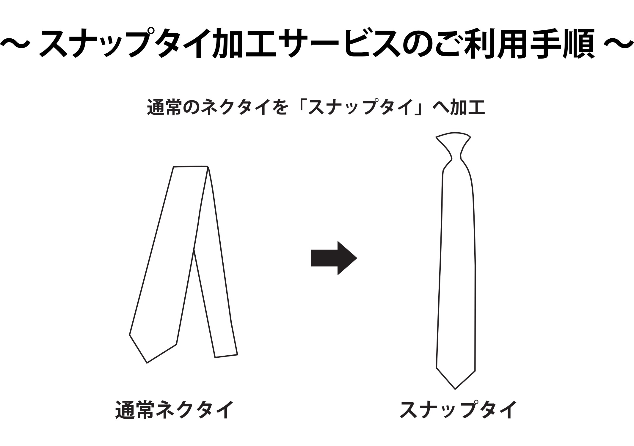 ◆スナップタイ加工に際し、お預かりしたネクタイは裁断してしまいますので元のネクタイに戻すことは出来かねます。